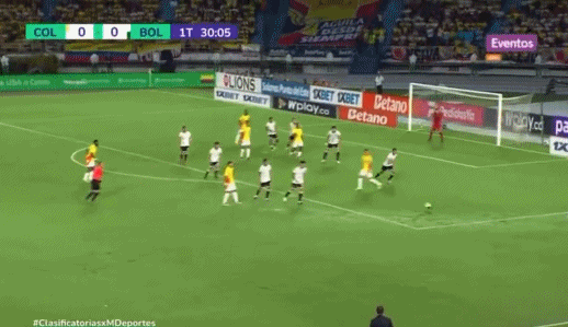 阿里亚斯送出横传,J罗门前抢点推射破门,哥伦比亚1-0领先。